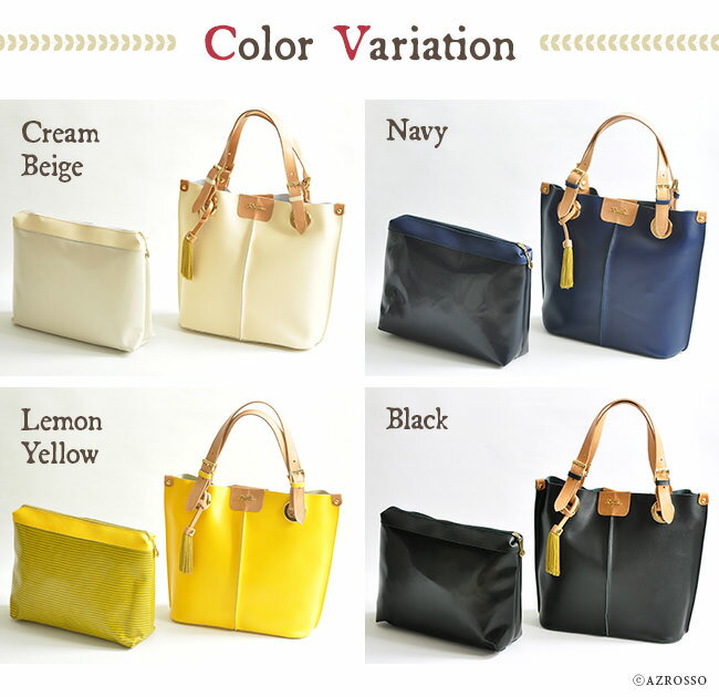 華やかな春夏らしいレモンイエロー(ライトイエロー 黄色)とクリームベージュ(ベージュ オフホワイト)、大人っぽいダークカラーが魅力のブラック(黒)とネイビー(紺 ブルー 青)をご用意。