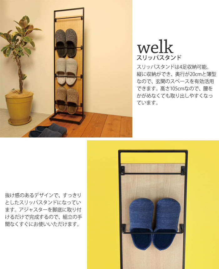予めご了承くださいませ商品 welk ウェルク スリッパスタンド WELK-ST1000 サイズ(約) 幅300×奥行200×高さ1050mm 素材 フレーム:スチール 粉体塗装 幕板:パーティクルボード (12mm厚) タモ突き板貼り 塗装 収納可能数 4足 輸入品 - 完成品 アジャスターを脚底に取り付けるだけで完成します 備考 直線的なスチールフレームがスマートな雰囲気を演出するエントランスシリーズ WELK。