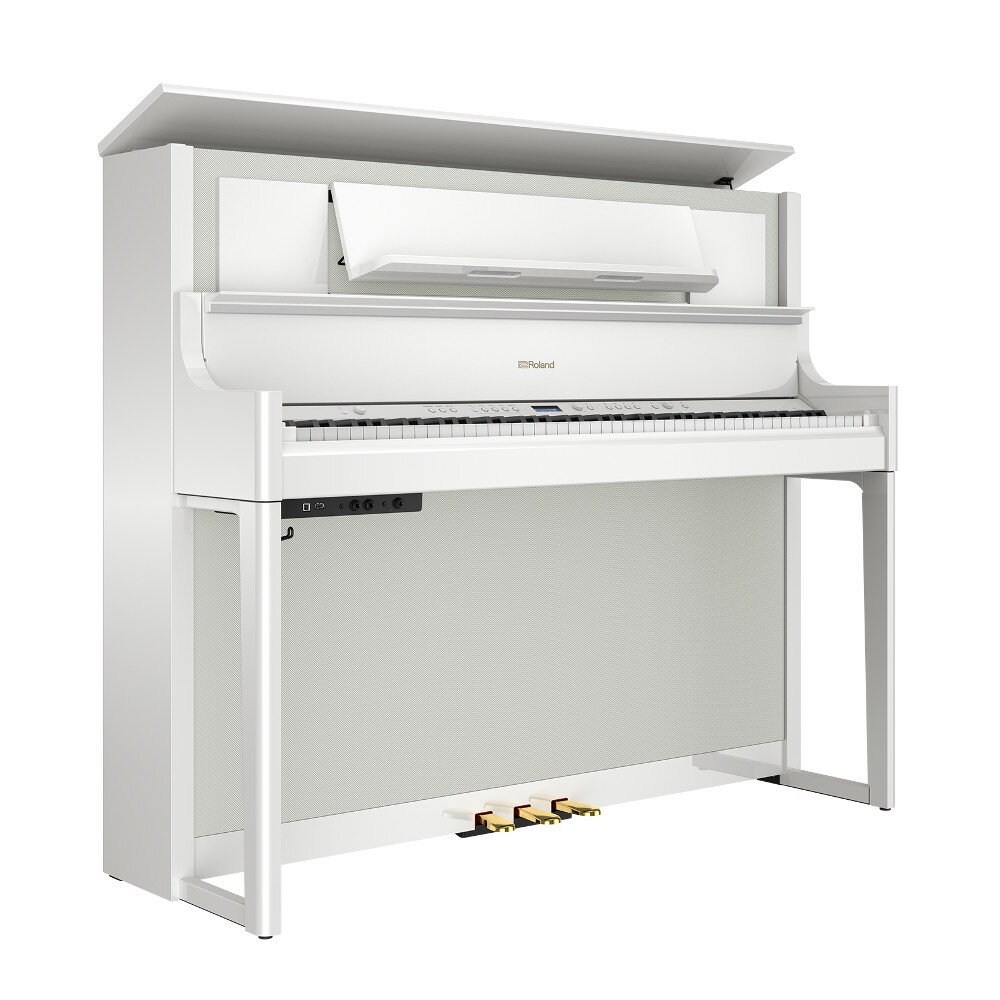 主な仕様 ■音源 ●ピアノ音:ピュアアコースティック・ピアノ音源 ●最大同時発音数:ピアノ:無制限(「コンサートグランド」音色ボタンでのソロ演奏時)、その他音色:256 ●音色:324 音色 ■アンビエンス:ピュアアコースティック・アンビエンス モデル:スタジオ、ラウンジ、コンサートホール、木壁のホール、石壁のホール、大聖堂、深さ:11 段階 ■マイステージ:12 種類+私のお気に入り ■鍵盤: 【LX708/706】ハイブリッド・グランド鍵盤(88 鍵):木材×樹脂センターフ レーム構造、エスケープメント付、象牙調・黒檀調 (LX708:鍵盤振動付き ) ■ペダル:【LX708】レスポンシブ・ダンパー・アクション・ペダル ■スピーカー・システム:アコースティック・プロジェクション 【LX708】キャビネット・スピーカー:25cm × 2(スピーカー・ボックス付き)、 ニアフィールド・スピーカー:(12 × 8cm)× 2(スピーカー・ボックス付き)、 スペーシャル・スピーカー:(12 × 8cm)× 2、スペーシャル・スピーカー:2.5cm × 2(ドーム型) ●定格出力 【LX708】20W × 2、6W × 2、6W × 2、5W × 2 ■ヘッドホン:ヘッドホン・アコースティック・プロジェクション ■調律・整音 ●鍵盤タッチ;キータッチ:100 段階、固定、ハンマー・レスポンス:10 段階 ●マスター・チューニング:415.3 〜 466.2Hz(0.1Hz 単位) ●音律:10 種類、主音指定可 ●エフェクト:音の明るさ ●ピアノデザイナー:大屋根、キー・オフ・ノイズ、ハンマー・ノイズ、アリコート、全鍵ストリング・レゾナンス、キー・オフ・レゾナンス、キャビネット・レゾナンス、サウンドボード・タイプ、ダンパー・ノイズ、ソフトペダル・タイプ、88鍵チューニング( ストレッチ・チューニング)、88 鍵ボリューム、88 鍵キャラクター ■内蔵曲 410 曲【内容】リスニング:23 曲、アンサンブル:30 曲、エンターテイメント:40 曲、ドレミで歌おう:30 曲、レッスン:287 曲(スケール、ハノン、バイエル、 ブルグミュラー、ツェルニー100 番) ■データ再生:再生可能データ:SMF(フォーマット0、1)、オーディオ・ファイル(WAV 形式:44.1kHz、16 ビット・リニア、MP3 形式:44.1kHz、64kbps〜320kbps、要USB メモリー) ■レコーダー:録音可能データ:SMF(フォーマット0、3 パート、約70,000 音記憶)、オーディオ・ファイル(WAV 形式:44.1kHz、16 ビット・リニア、要USB メモリー) ■ Bluetooth:オーディオ:Bluetooth 標準規格Ver 3.0(SCMS-T 方式によるコンテンツ保護に対応)、MIDI:Bluetooth 標準規格Ver 4.0 ■対応アプリケーション(ローランド製):Piano Every Day、ピアノデザイナー、ミュージックデータ・ブラウザー ■便利な機能:メトロノーム(テンポ/拍子/強拍/パターン/音量/音色変更可能)、デュアル、スプリット、ツインピアノ(セパレート・モード対応)、移調(半音単位)、スピーカー音量/ヘッドホン音量自動切り替え、ボリューム・リミット、パネル・ロック、オート・オフ ■外装:譜面立て:譜面押さえ付 【LX708】鍵盤蓋:回転式、鍵盤蓋スイッチ付 ■その他 ●ディスプレイ:有機EL ディスプレイ 128 × 32 ドット ●接續端子:DC In 端子、Input 端子:ステレオ・ミニ・タイプ、Output(L/Mono、R)端子:標準タイプ、USB Computer 端子:USB B タイプ、USB Memory 端子:USB A タイプ、Phones 端子× 2:ステレオ・ミニ・タイプ、ステレオ標準タイプ ●電源:AC アダプター ●消費電力:【 L X 7 0 8 】 2 4 W( 2 2 W ~ 7 0 W ) ●外形寸法:【LX708】屋根を閉めたとき:1395(幅)× 491(奥行)× 1180(高さ)mm、 屋根を開けたとき:1395(幅)× 502(奥行)× 1253(高さ)mm ●質量:【LX708】PE/PW:110.5 kg ●付属品:取扱説明書、「安全上のご注意」チラシ、保証書、ローランド ユーザー登録カード、楽譜集「ローランド ピアノ名曲集」、AC アダプター、電源コード、ヘッドホン・フック、専用高低自在椅子