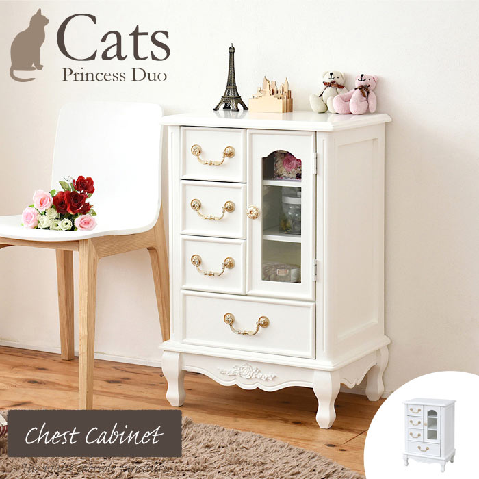 《JKP》キャッツ プリンセスDUO チェストキャビネット 幅50cmプリンセスシリーズ 収納棚 薔薇モチーフ ガールズ おしゃれ 衣類整理 背面化粧 猫脚 乙女 ラブリー 木製 人気 レディース ホワイト 姫 お洒落 チェスと cats Princess SGT-0119