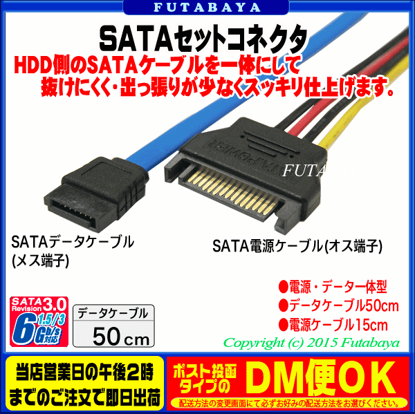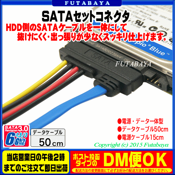 シリアルATAセットコネクタアイネックス(AINEX) SAT-3005PWS●SATA電源+SATAデータ(メス)-SATA電源(オス)+SATAデータ(メス)●ケーブル長:データ側50cm●ドライブ側セットコネクタ●SATA:6Gb/s対応