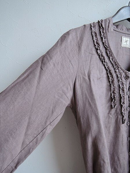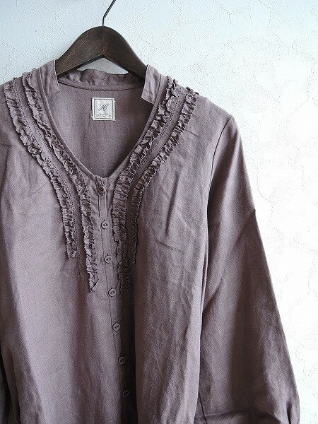 素材は軽やかなコットンリネン、ふんわりした袖と後ろ下がりの裾のライン、ポケットも付いた便利なチュニックブラウスです。